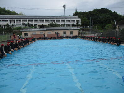 グラウンド半周した後、学校を出て、学校周辺の道路を走って帰ってきます。