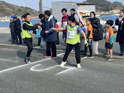 上天草市の親善駅伝大会に「上小ランナーズ」として昨年度に引き続き参加しました。全10区間を小学生と教職員で襷をつなぎます。一般の部の1区は小学生、中高生の部は女子区間となります。緊張のスタートです。