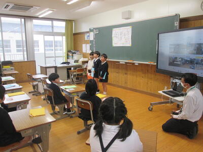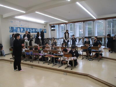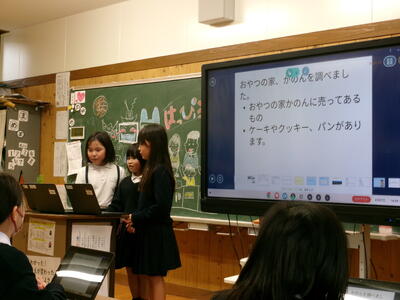 1年生は音楽室で「キラキラ星」などの合奏をしていました。2年生はこの一年間でできるようになったことの発表を行っていました。3年生は上天草市のいろいろな調べたことについて発表していました。