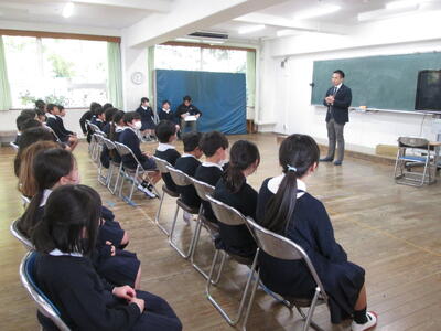 終業式の後、2学期で退任される先生の退任式を行いました。花束贈呈でも子ども達は心のこもったあいさつをしました。