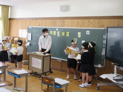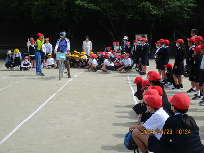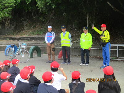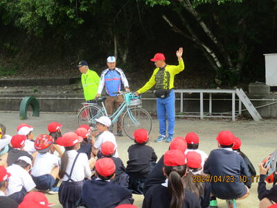 4月23日、交通安全教室を行いました。交通安全指導員と地域おこし協力隊の方々に来校いただきました。