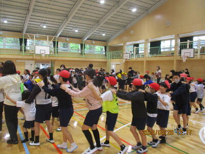 縦割り班の顔合わせやレクリエーションをしました。レクリエーションは6年生の担当の児童達がテンション高く盛り上げてくれ、みんな笑顔で楽しむことができました。