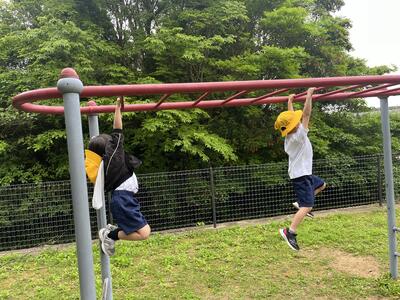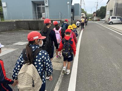 その後、スパタラソ近くの花海好公園まで歩きました。6年生は1年生と、5年生は2年生と、4年生は3年生と手をつなぎながら、元気に歩きました。