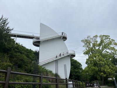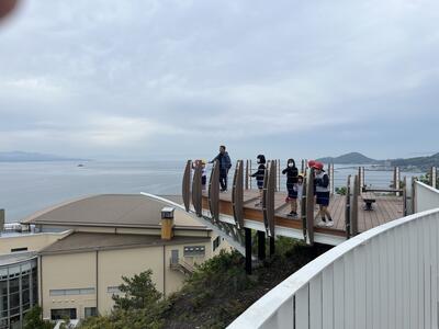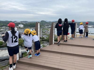 スパタラソの展望台からの眺めを楽しむ児童もたくさんいました。