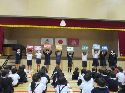 5月1日、運動会の結団式を行いました。運営委員会から、運動会のスローガンが発表されました。