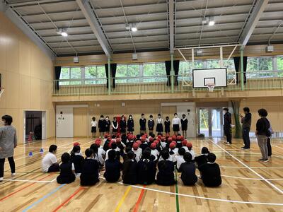 4月26日、歓迎遠足を行いました。まずは、体育館で歓迎行事です。