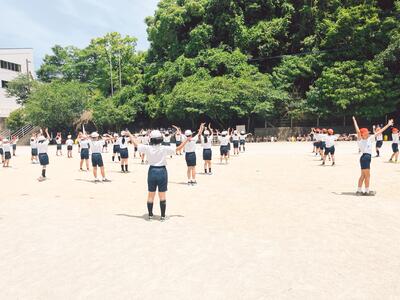 運動会に向けて、各学年部の「表現」のプレ発表会を行いました。児童が互いの演技を正面から見て鑑賞し合う機会をつくりました。