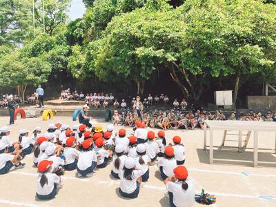 応援合戦は、高学年の応援団を中心に、1~6年まで全員が全力で大きな声を出し、見事な演舞を披露しました。