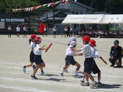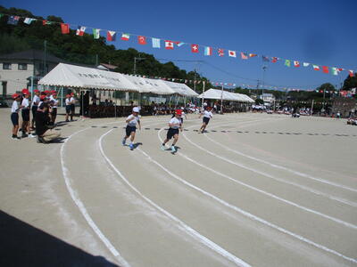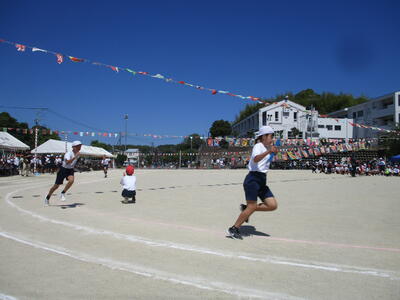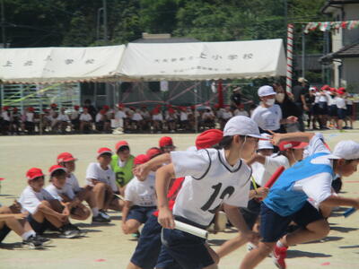 各学年のリレーも、今年の運動会テーマ「チームワークできずなをつなげ 燃え上がれ上っ子」を表すとても素晴らしい姿でした。