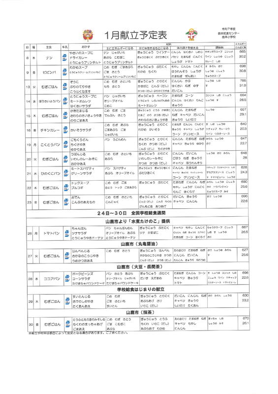 鹿本給食センターからのお知らせ