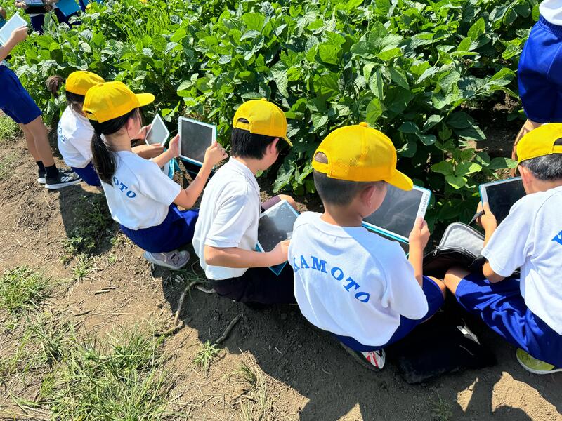 すくすく育ち、大きくなった大豆を嬉しそうにタブレットで写真を撮り、記録しました。