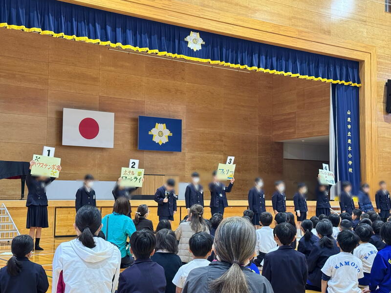 10月25日に児童集会が行われました。今回はなかよし委員会と図書委員会の発表でした。