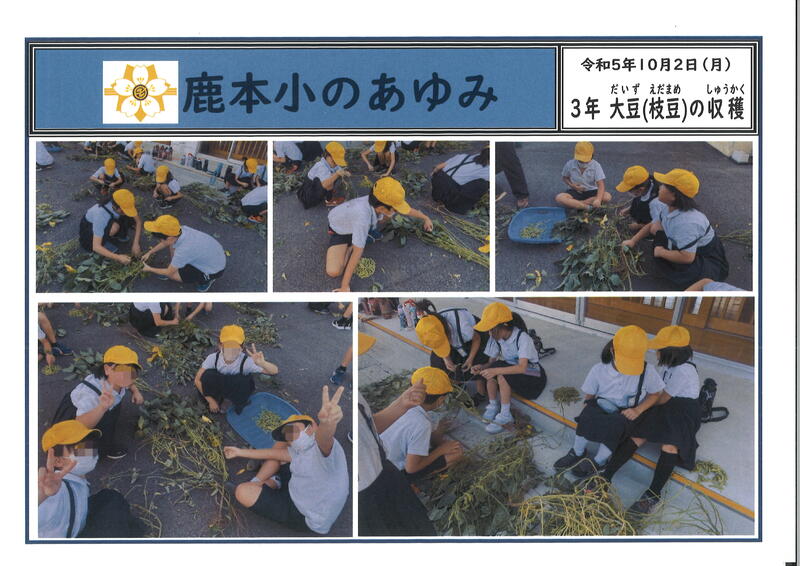 5月に種の観察をして、一人一鉢種まきをした「大豆」。一人一鉢のものは残念ながら枯れてしまいましたが、学年の畑に蒔いていた大豆が大きくなり、たくさん実をつけました。収穫し、「枝豆」として食べるよう家に持って帰りました。とってもおいしかったとのことでした。
