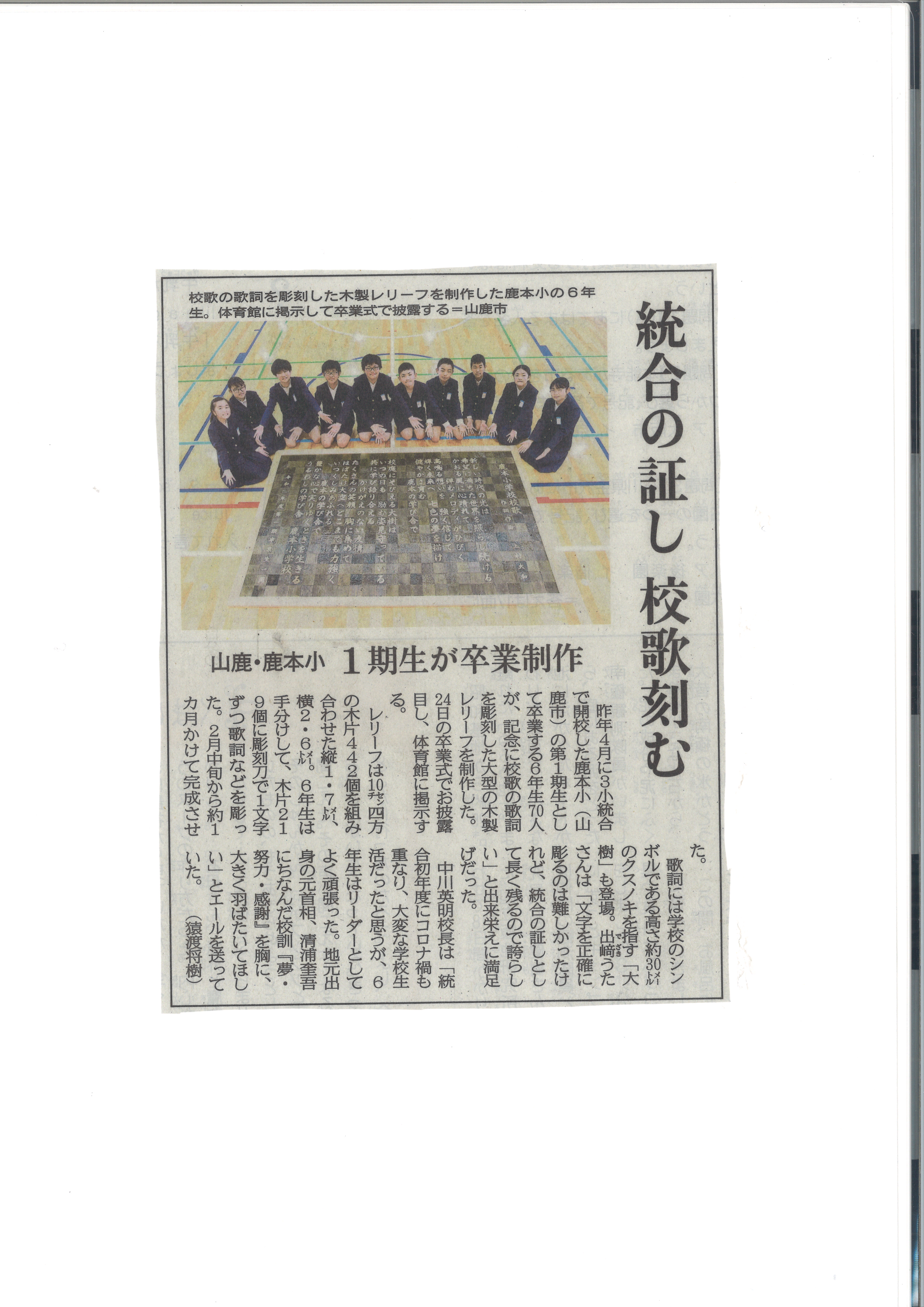◎令和2年4月9日(木) 熊日新聞(鹿本小学校開校)