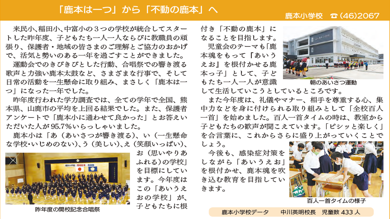 ◎令和2年5月 広報やまが(鹿本小学校開校)