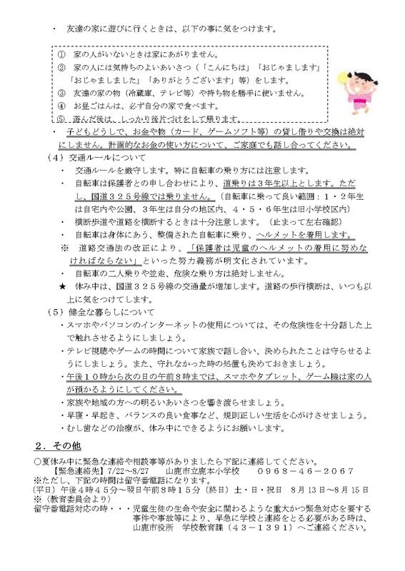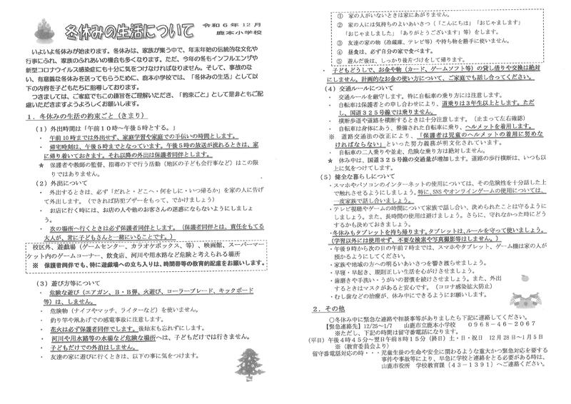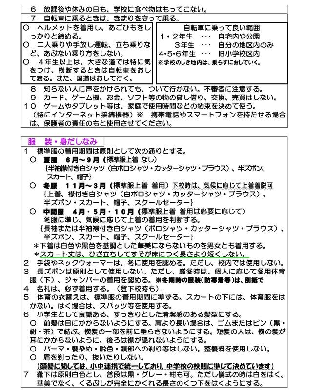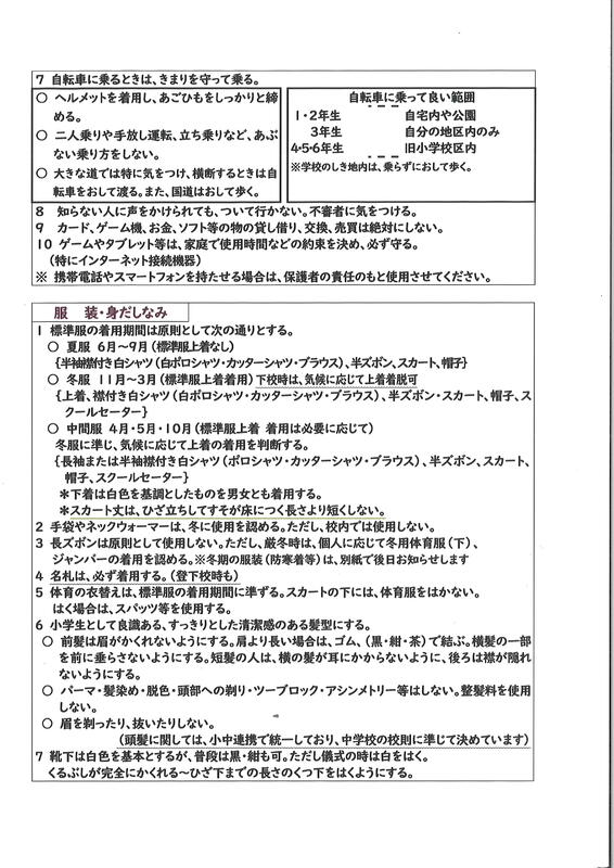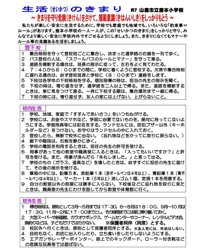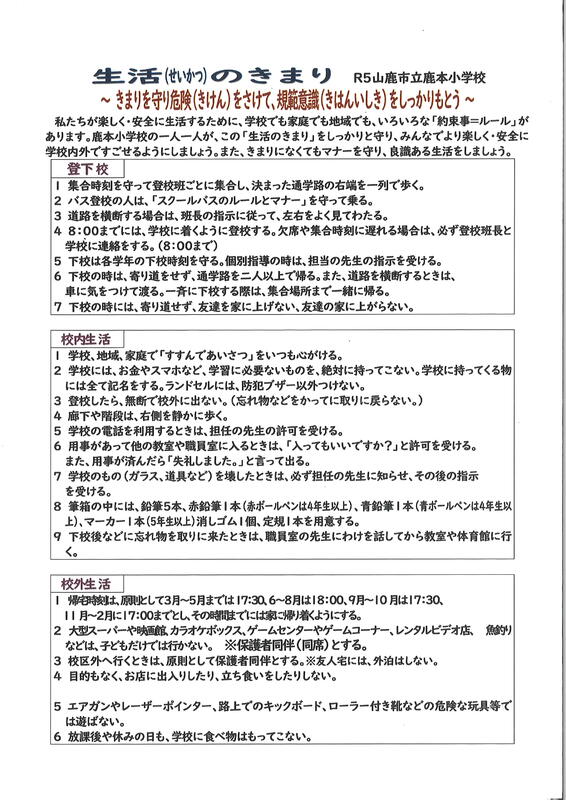 鹿本小学校 生活のきまり