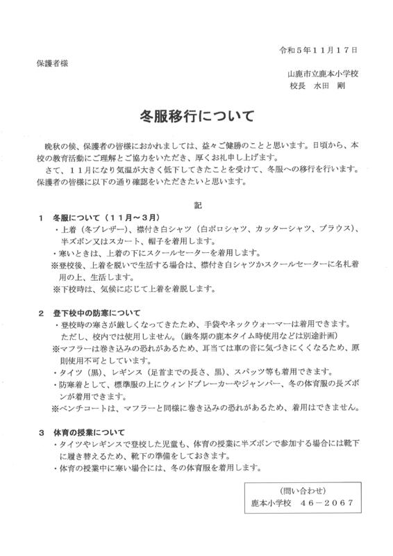 冬服への移行について