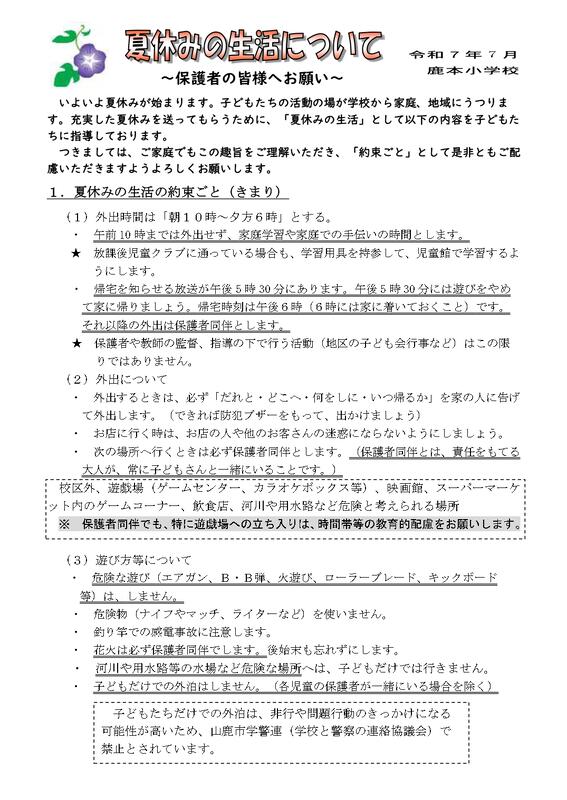 鹿本小学校生活のきまり
