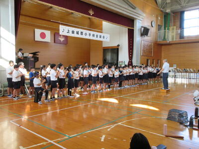昼活動に結団式がありました。校長先生のお話の後、スローガン発表、応援団員の自己紹介がありました。