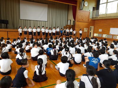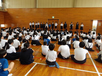 10月17日(金)に上益城郡音楽会があり、本校から5年生が出場しました。合奏「キリマンジャロ」と合唱「蝶が海峡を渡る」を披露しました。