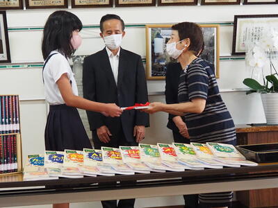 運営委員会と図書委員会が、学校を代表して本を受け取りました。