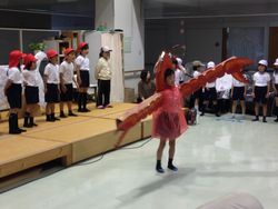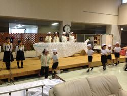 会場のホールには、たくさんの利用者の方に集まっていただき、少々緊張気味の1年生でしたが、学校での発表にも負けないくらい元気で楽しい劇をお見せすることができました。