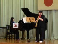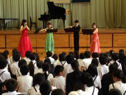 ソプラノサックスとピアノの力強い演奏や、フルート四重奏のうっとりする音色に子どもたちも、集まって下さった地域や保護者の方も聞き入っていました。