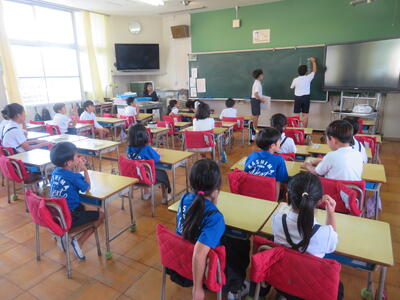 4年生が「水育講師」の先生から、水を育む森のはたらきや、森を守る取組などについて学びました。