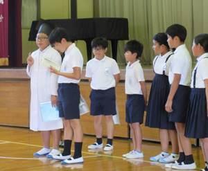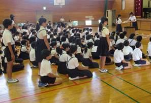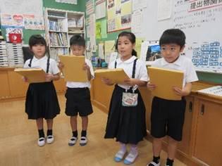 本日朝から児童集会を行いました。3連休明けでしたが、5分前には全員体育館に集合できていました。集会に先がけて、町の水泳記録会で上位入賞した児童の記録が郡でも上位に入っていたため、その表彰が行われました。次に、2年生が発表してくれました。言葉遊びとけんばんハーモニカの演奏でした。どちらも上手にできていました。2年生に続いて、図書委員会の発表でした。まだまだ日中は暑いですが、「読書の秋」です。たくさん本を読んで心を豊かにしてください!