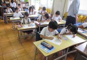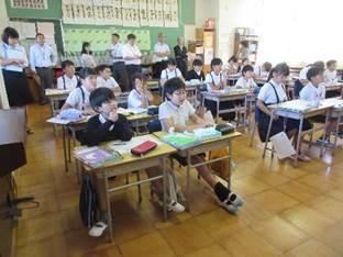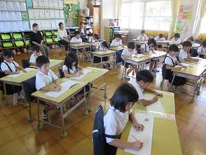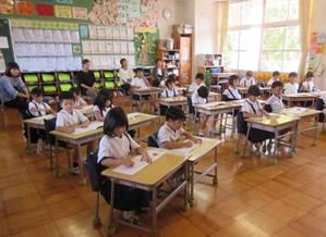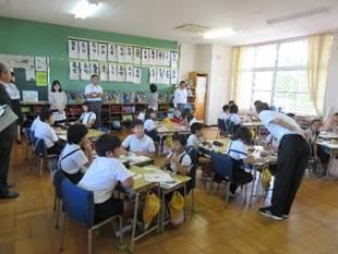 昨日、英語教育アドバイザー事業が行われました。これは、新学習指導要領により高学年は外国語活動が外国語科になり、新たに中学年に外国語活動が導入されるため、英語の授業の指導力向上をめざした取り組みです。アドバイザーが授業参観されたあと指導をされます。昨日は、3年生・5年生・6年生の3クラスで指導がありました。子どもたちは、アドバイザーに参観されながらも、いつも通りしっかり英語を聞いたり言ったりしていました。水曜日は4年生の授業参観に来られます。