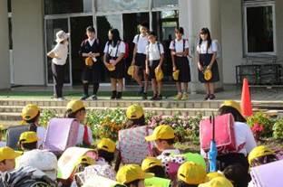 毎週火曜日は、地区別下校を行っていますが、月末は一斉下校となります。運営委員会が進行し、連絡等のあと交通のきまりをみんなで言って下校です。そして、各地区ではたくさんの方に安全の見守りをしていただいています。地域のみなさんのおかげで安全に下校することができ、感謝です!