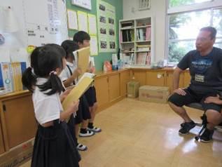 昨日の2時間目に1年生が生き物についての発表をしました。生活科の時間に調べてまとめた生き物のことを、グループごとに職員室や校長室に行って発表しました。先生方からも「なるほど~」「すごい!よく調べたね」と言っていただき、大満足の子どもたちでした!