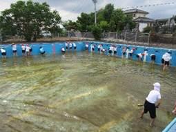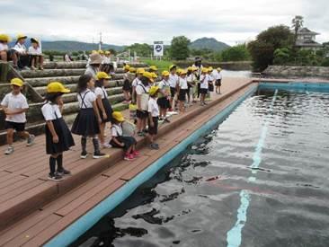 先週4・5・6年生がきれいにしてくれたプールに水が入りました。昨日の4時間目には、先陣を切って3・4年生がプール開きを行いました。気温は高く汗ばむ感じでしたが、嘉島の水はさすがに冷たく、途中でギブアップしてプールから出る子どももいたようです。水泳は、命を守る学習です。これからしっかり練習してほしいと思います。今後、他の学年も随時プール開きをしていきます。