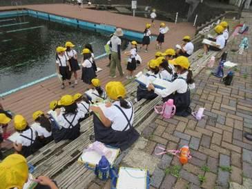火曜日に、2年生が生活科の学習で「町たんけんにいこう」という学習で、下六嘉方面に出かけました。今回は、六嘉神社と天然プールに行きました。中には初めて行ったという子もいて、地域のことを知るよい機会となりました。天然プールでは、「魚がいました。」「ザリガニがいました。」と口々に教えてくれ、学習シートに絵と文でたくさん気付きを書いていました。担任の先生の言うことをよく聞いて、安全にたんけんできたようです!