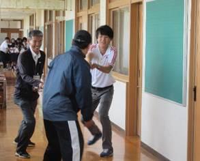 子どもたちが安全に避難できるよう職員が不審者に対峙します