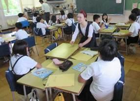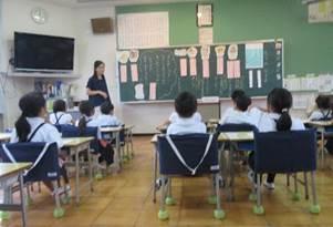 先週の金曜日は、ALTのマデリン先生がお見えになり、外国語の授業が行われました。4年生は「遊びをしょうかいしよう」という単元で、「I play~.」の学習を行いました。最初の挨拶は、ちょっと声も小さかった4年生ですが、歌をうたうころには元気が出てきていました。昨年から本格的に外国語の学習を始めた4年生は、さすがに上手に発音できていました。