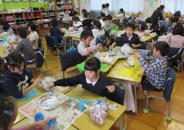 1学期には描画、2学期には版画に取り組んだ図工ですが、3学期は工作展に向けて各学年作品づくりにがんばっています。学年に応じた題材で、子どもたちは夢中になって作品と向き合っています。どの学年も、大人では思いつかないような発想に驚かされます。どんな作品が出来上がるのか楽しみです。