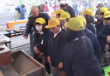 先週の金曜日、学校正門をでてすぐのところにある足手荒神の例大祭がありました。子どもたちが登校する時にはすでに出店もあるほど祭りの雰囲気が盛り上がっていました。2時間目には、嘉島の祭りを調べている3年生が見学に行きました。たくさんの人が来られていたので邪魔にならないように見学させてもらっていると、NHKのビデオ特派員の方に撮影を依頼されました。もしかすると、木曜日の夕方テレビに映ることになるかもしれません。