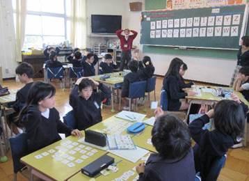 先週の金曜日、ALTのマデリン先生がお見えになり、子どもたちと一緒に楽しく英語の学習をしました。5時間目の4年生は、アルファベットの大文字の学習をしていました。一緒に発音したり、かるたゲームをしながら楽しく英語を覚えていました。ただ発音するだけでもノリノリの4年生、見ているだけでも楽しい時間でした。