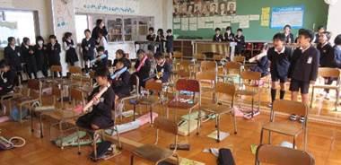 月曜日の3時間目にスクールコンサートが行われました。本来は昨年7月に実施予定でしたが、台風接近の影響で延期になっていました。平成音楽大学より4名の学生さんに来ていただき、クラリネットのアンサンブルをしていただきました。そのうちの一人は、毎週月曜日に学生ボランティアとして学習支援をお手伝いしていただいていますので、子どもたちにはおなじみです。クラシックあり、ディズニーあり、ジブリありと子どもたちになじみのある曲をたくさん演奏していただき、あっという間の1時間でした。貴重な演奏をありがとうございました。