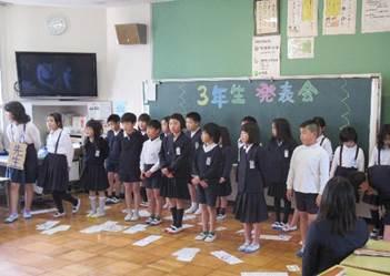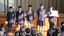火曜日の朝から全校集会がありました。最初に、JA作文コンクールや工作展での活躍を称え、表彰が行われました。次に、生活安全委員会から3月の生活目標が発表されました。3月は「1年間のまとめをしよう」という目標なので、委員会の児童がそれぞれ自分の1年間のまとめを、原稿を見ずに発表しました。最後に、卒業式で歌う「大空がむかえる朝」「校歌」を練習しました。いよいよ今年度も終わりに近づきました。それぞれの学年で1年間のまとめをがんばりましょう!
