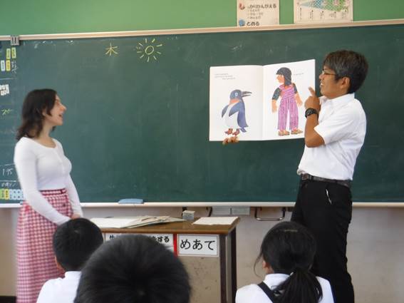 ネイティブな発音を聞くことができ、子どもたちの英語の学びが深まっています。しっかり聞いて、しっかり話す学習を頑張っています。写真は2年生、英語の絵本を読んでいただきました。