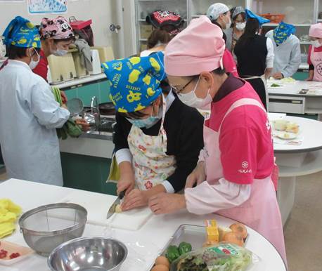 11月19日(月)に「おやこで学ぶ食育教室」がありました。嘉島町食生活改善推進協議会の10名の方が講師としてお見えになり、5年生及び保護者が参加して4種類の食事を作り、おいしくいただきました。ぜひおうちでもチャレンジしてください!