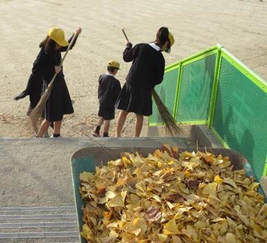 学校にはたくさんの木があり、この季節は毎日大量の落ち葉に悩まされます。最近、6年生が朝から自主的に落ち葉掃除のボランティアを始めてくれ、他の学年にも広がってきています。毎朝、もくもくと掃除をしている子どもたちの姿ですがすがしい一日のスタートを切っています!