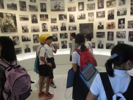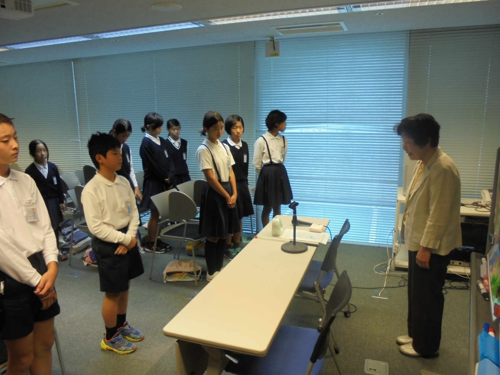 原爆資料館では、3歳のころに被爆し家族を亡くされた松本さんから話を伺い、いかに原爆が恐ろしいか、戦争がいかに悲しいものであるか、今の私たちが考えるべきことなど、たくさんのことを教えていただきました。子どもたちも聞いた感想を発表し、真剣に学んでいました。