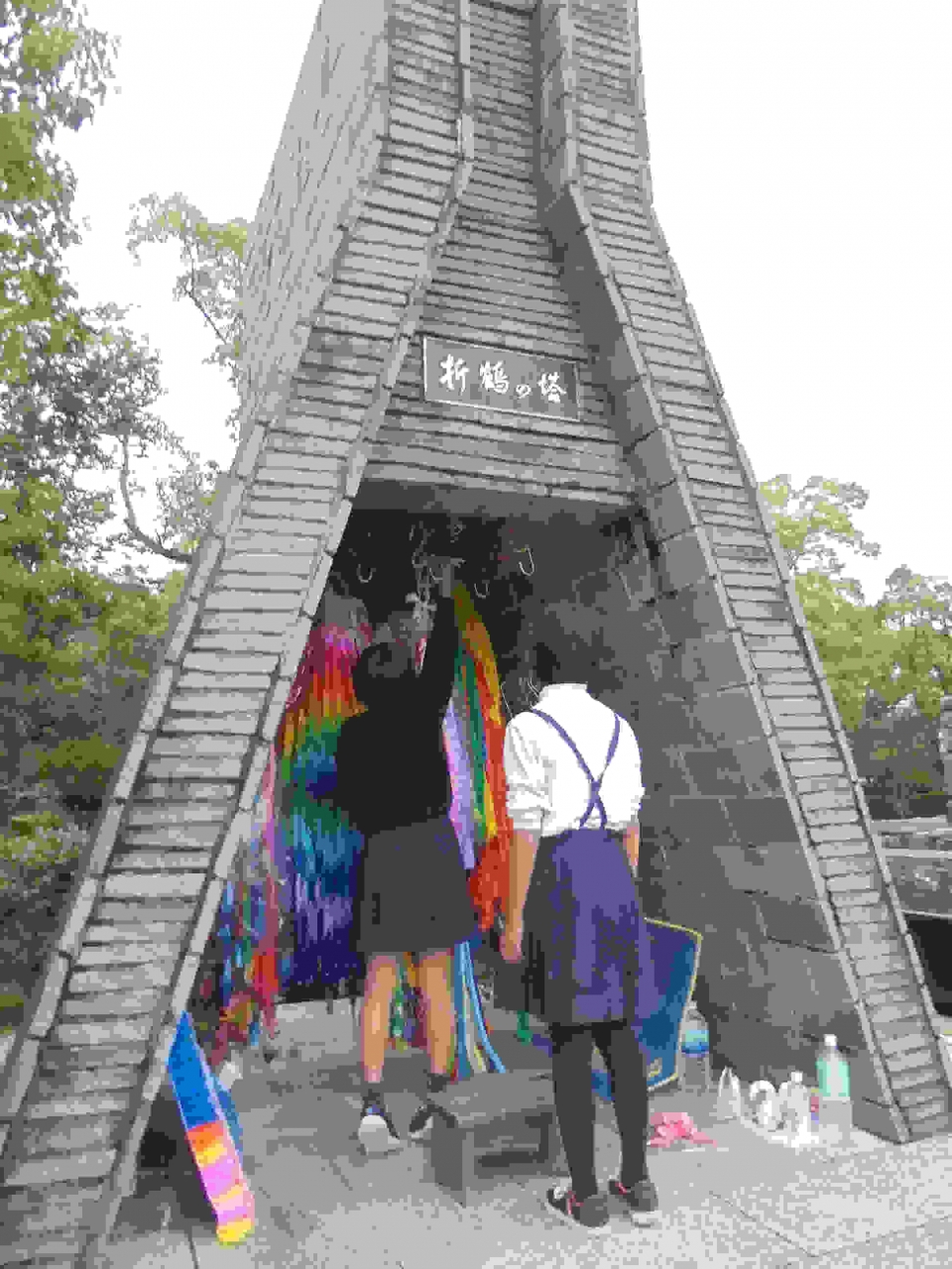 その後はフィールドワークへ。原爆や戦争に関する遺構をたくさん見て回りました。平和集会では千羽鶴(←ほとんど子どもたちで完成させました)をささげ、「ヒロシマの有る国で」を歌い、平和を守る決意を固めました。
