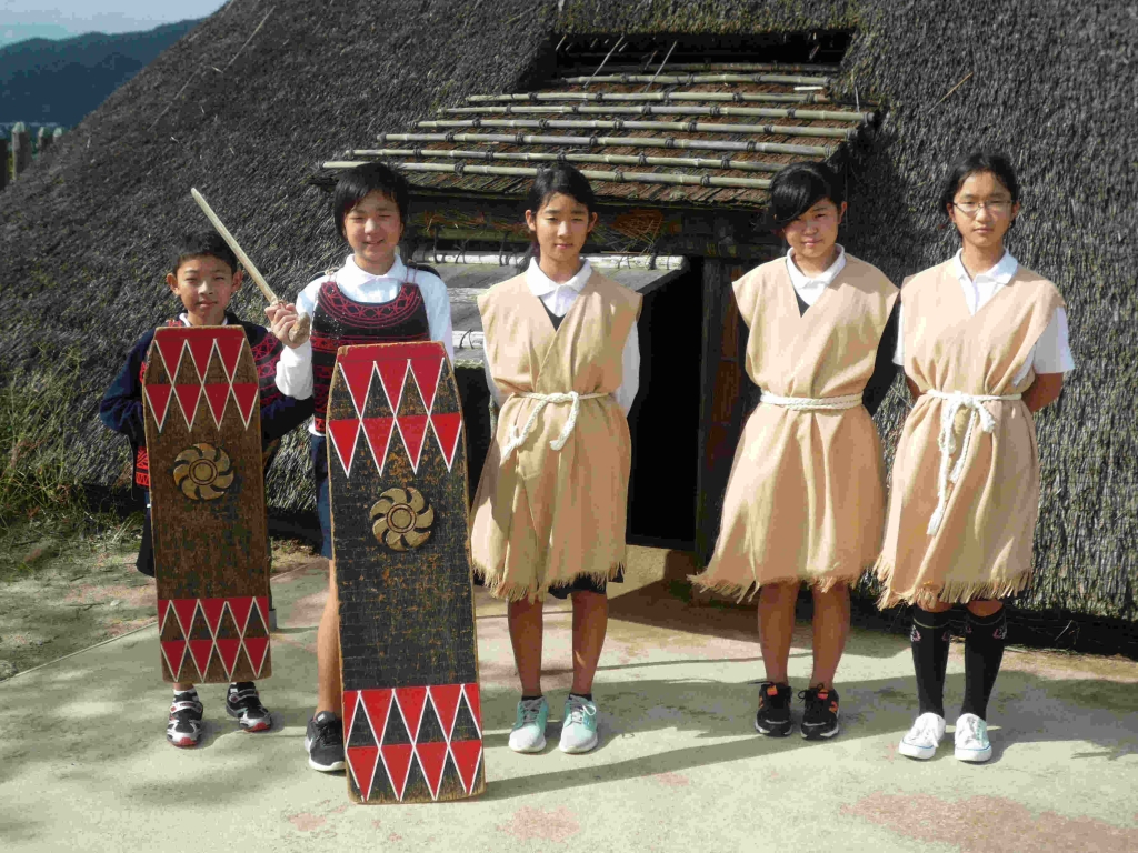 最後の見学地は吉野ヶ里遺跡。教科書でも見た弥生時代の遺跡を見学しました。鎧や盾を身に付け、弥生時代当時の人々のくらしに思いをはせました。公園もどんどん整備されていて、時間いっぱいたっぷりと満喫してきました。