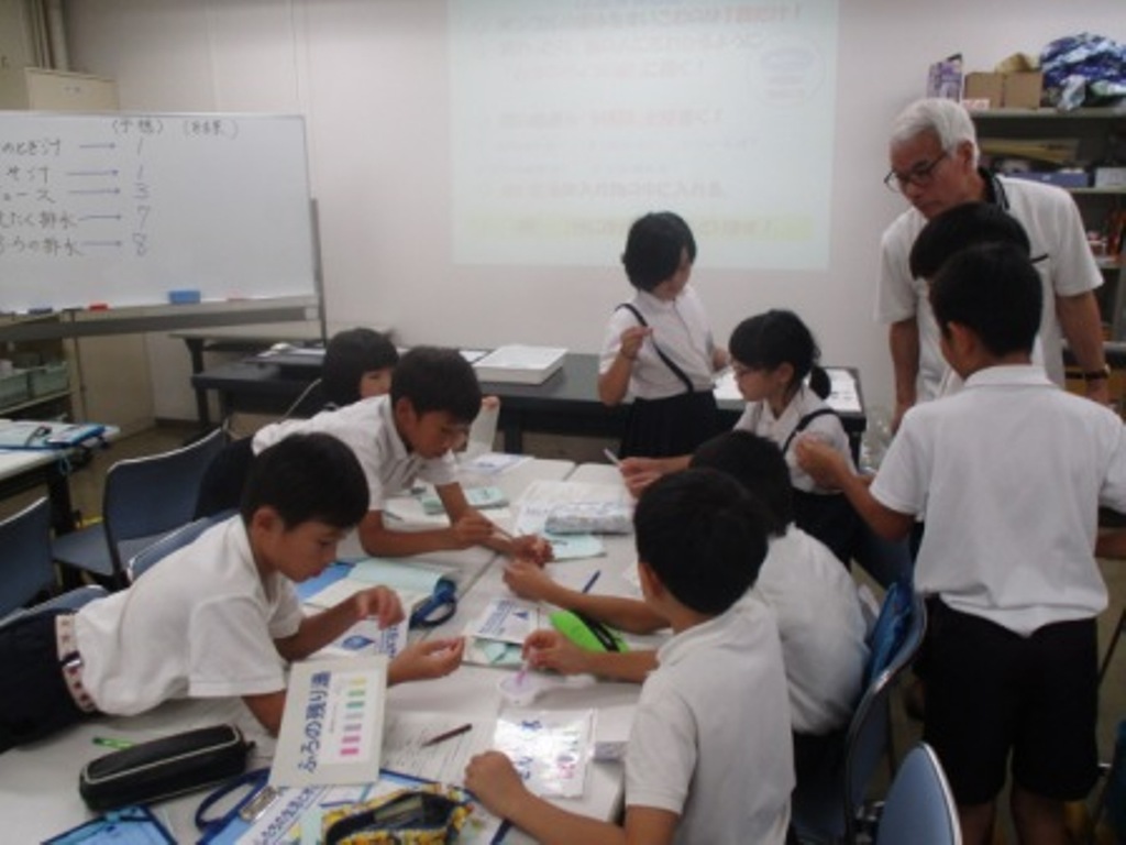 また、完成後に塩分チェッカーを使っての塩分測定を行い、どのくらいの味が健康によいのかを知りました。お手製の味を楽しみつつ、食と健康についての理解を深めた子どもたちでした。