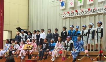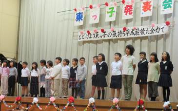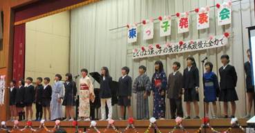 12月2日(日)は、たくさんの方々にご来校いただき、盛大に「東っ子発表会」を実施することができました。準備していた椅子では足りないぐらいの保護者の方、地域の方の前で、子どもたちは練習の成果を遺憾なく発揮し、堂々と発表することができました。ご来賓として参加いただいた児童育成懇談会のみなさんから「大きな声で発表できていて感動した。」「子どもたちの目がキラキラしていた。」「どの学年も目が離せない発表で、面白かったり感動したりした。」「あっという間に時間が過ぎた。」など、たくさんのおほめの言葉をいただきました。この頑張りを、今後の学校生活にぜひ生かしていきましょう!たくさんのご声援ありがとうございました!