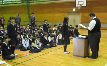12月4日(火)全校集会がありました。まずは、9月に出品していた「豊かな心をはぐくむ標語」に入選した6名の紹介があり、代表児童が校長先生より賞状をいただきました。そのあと校長先生からのお話がありました。本校では、2学期からスピーチ活動に取り組んでおり5年生と6年生はその成果を試すべく、メモを取りながら話を聞いていました。いつも以上にしっかり話を聞く子どもたちでした。さて、校長先生の話の内容は?ぜひ、おうちで子どもさんに聞いてみてください。